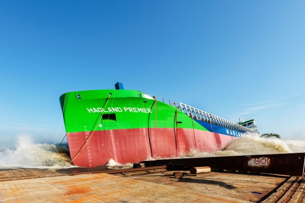Hagland Polaris was launched today at the Royal Bodewes shipyard in the Netherlands. The godmother broke the bottle on the first attempt and the ship went sideways into the canal as planned. The ship is expected to be completed after commissioning and sea trials in mid/late February 2026.