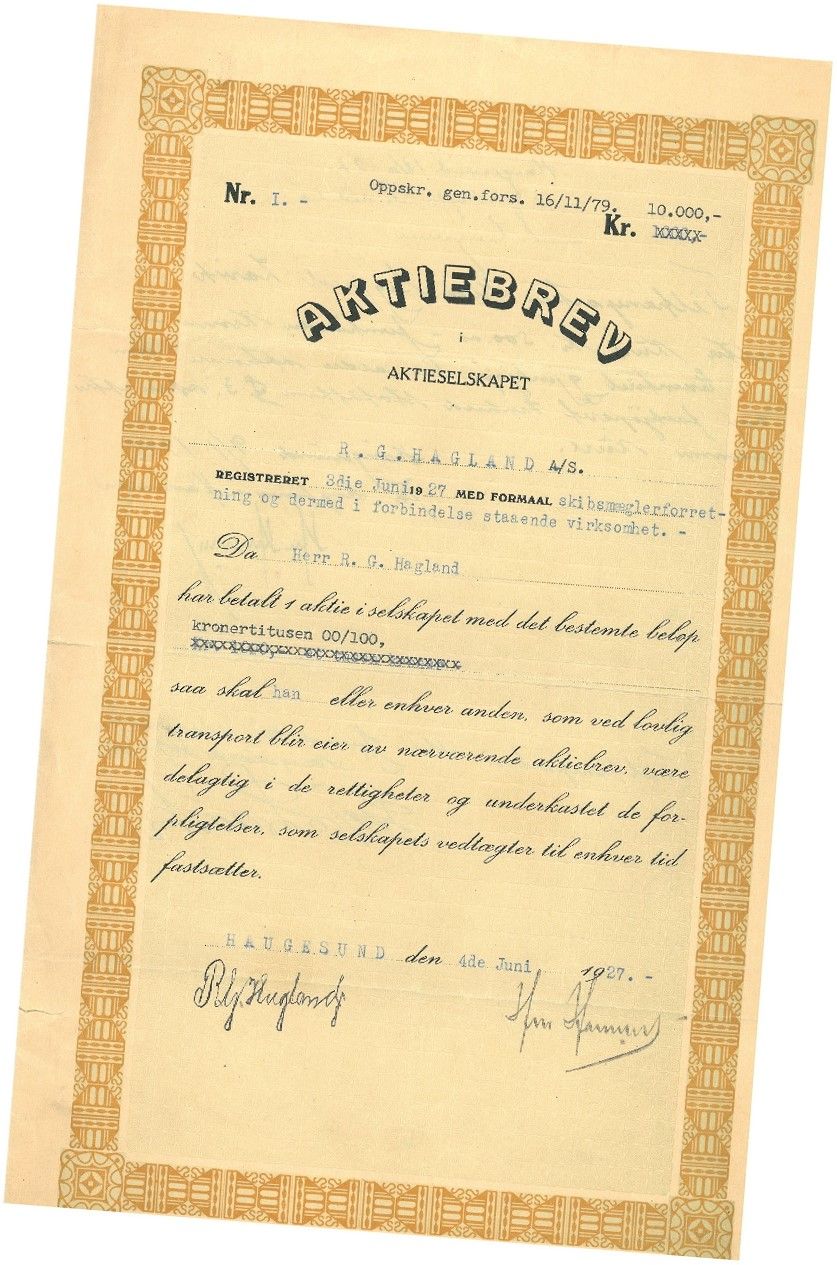 Rasmus Gautsen Hagland establishes himself as shipowner and shipbroker.