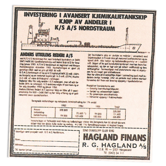 In 1983, Hagland acts as broker for its first chemical tanker, eyeing new opportunities.